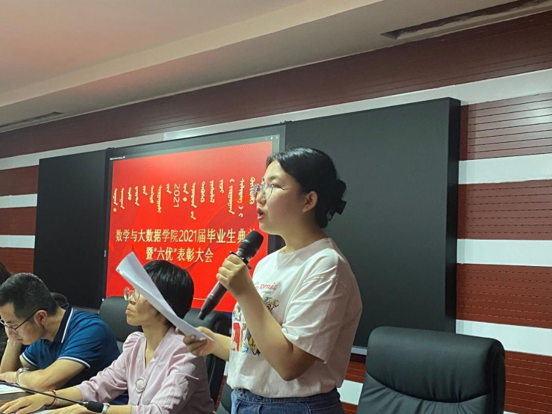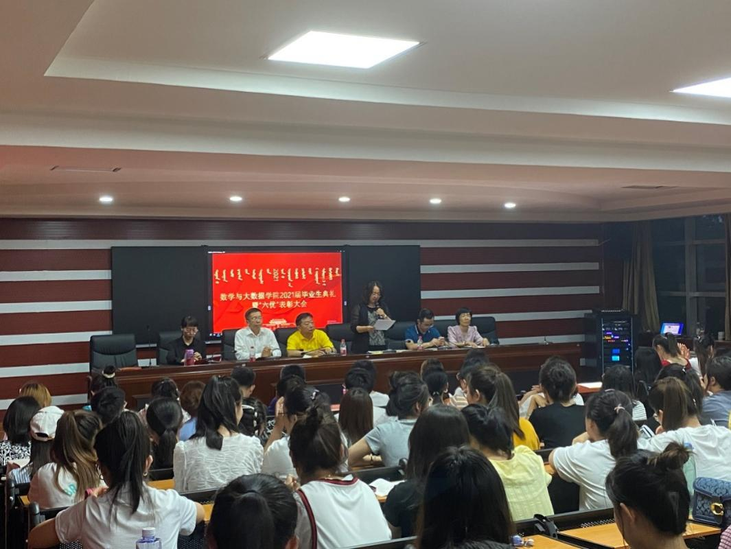 2021年是极赋时代意义的一年,是十四五规划的开局之年,也是中国共产党建党100周年华诞。在这个特殊的年份,数学与大数据学院于2021年6月15日晚上在尚智楼4楼报告厅隆重举行2021届学生毕业典礼暨“六优”表彰大会,学院院长王海清教授、组织部副部长兼2017级小学教育2班班主任白秀副教授、大学数学与数学教育教研室主任兼2017级小学教育1班班主任敖民老师、学工办主任刘爱春老师、团总支负责人于佳晖老师及部分教师代表出席会议,2021届全体毕业生及部分在校生代表参加了会议。会议由学院党总支副书记郝喜凤主持。