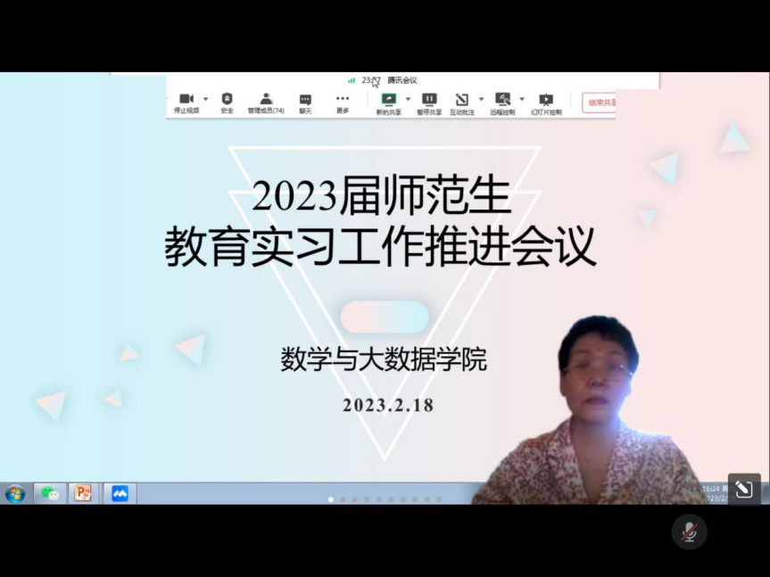 2月18日下午,数学与大数据学院组织2023届小学教育专业和应用数学专业百余名学生和实习指导老师在线召开教育实习推进会。
