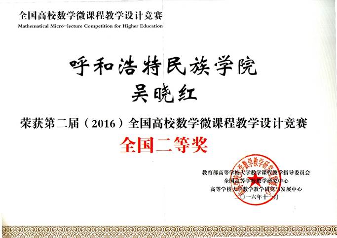 十年来,不断深化教学改革,课程建设迈出新步伐。目前,学院拥有国家级精品视频公开课1门——“行星运动与常微分方程”、自治区级精品在线课程1门、自治区级在线开放课程2门、自治区级一流本科课程2门、校级精品课程2门,其中额尔敦布和教授负责的自治区级精品在线课程——“常微分方程”课程由全国25所高校2500多名师生共享学习。团队先后主持完成全国民族教育研究合作课题、教育部校企合作协同育人项目、国家民委教学研究课题等多项省部级教育教学类课题;出版全国大中专院校规划教材和学术专著等共6部;获得内蒙古自治区级高等教育教学成果一等奖2个、三等奖1个和国家民委教学成果三等奖奖1个,实现学校自治区级高等教育教学成果一等奖零的突破。