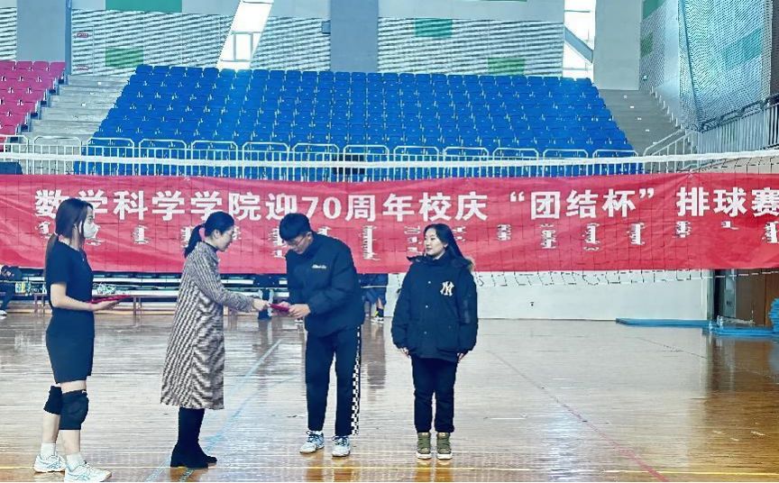11月14日至19日,数学科学学院在学校体育馆举行迎70周年校庆“团结杯”排球比赛,学院各班级共11支代表队参加比赛。学生工作办公室主任刘爱春老师参加活动并为获奖集体颁奖。