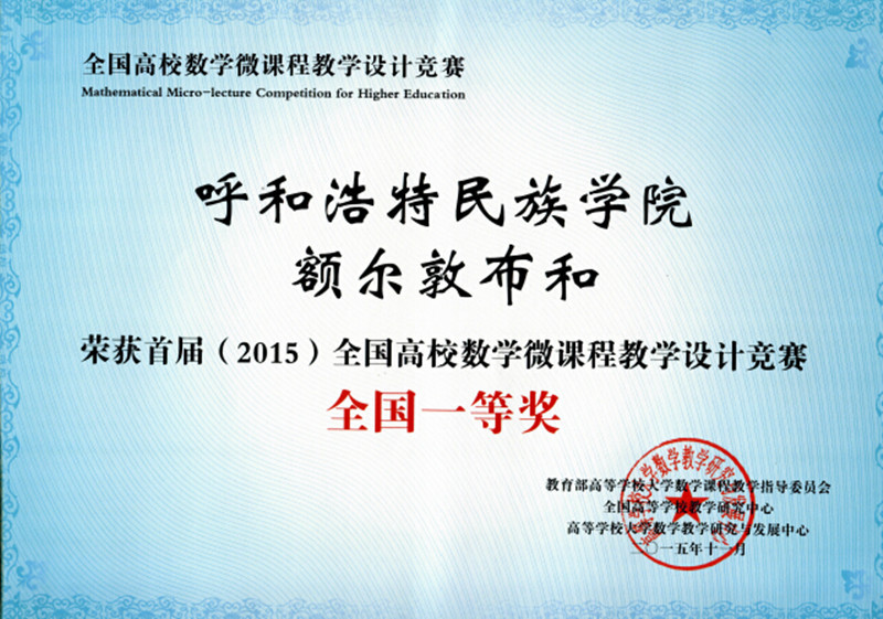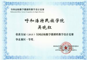 第一、二届全国高校数学微课程教学设计竞赛获奖证书