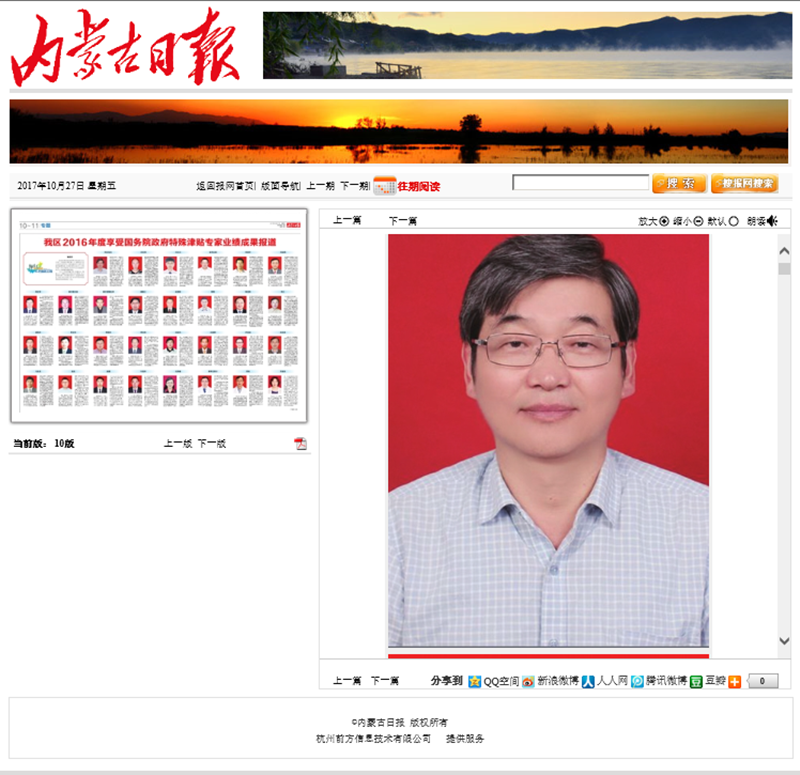 近日,《民族画报》、《内蒙古日报》先后发表文章《数学家阿拉坦仓》、《2016年度享受国务院政府特殊津贴专家业绩成果报道》,对Beat365副院长阿拉坦仓教授进行报道。