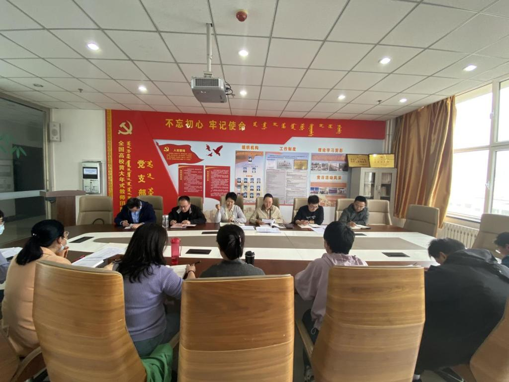 4月20日下午,数学与大数据学院党总支在综合楼807黄大年式教师团队党支部活动室召开学习贯彻习近平新时代中国特色社会主义思想主题教育动员部署会。会议由党总支副书记郝喜凤主持,副院长额尔敦其其格、全体教职工党员和副高级以上教师参加会议。
