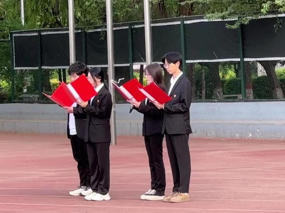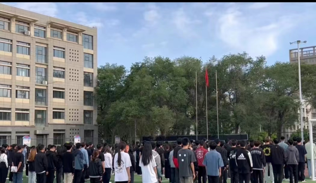 5月29日,数学科学学院在学校南院操场举行升国旗仪式。学院党总支书记白秀、副院长额尔敦其其格、黄大年式教师团队党支部书记青梅、学工办主任刘爱春、各班主任以及全体在校生参加了此次升旗仪式。