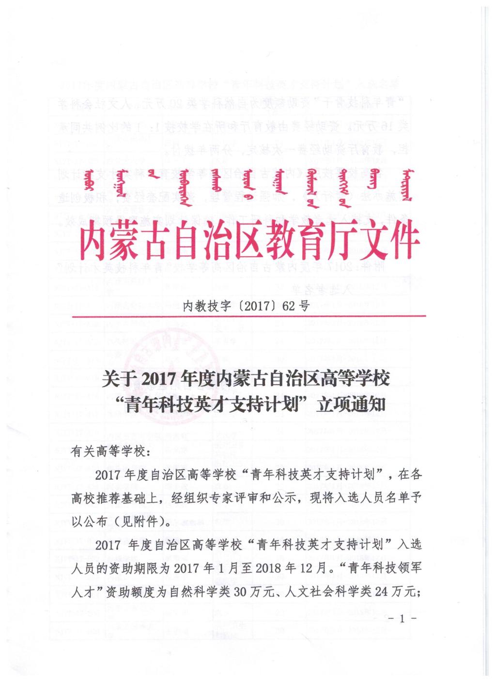 12. 人才工程:关于2017年度内蒙古自治区高等学校“青年科技英才支持计划”立项通知—青年科技领军人才(获得者:额尔敦布和)