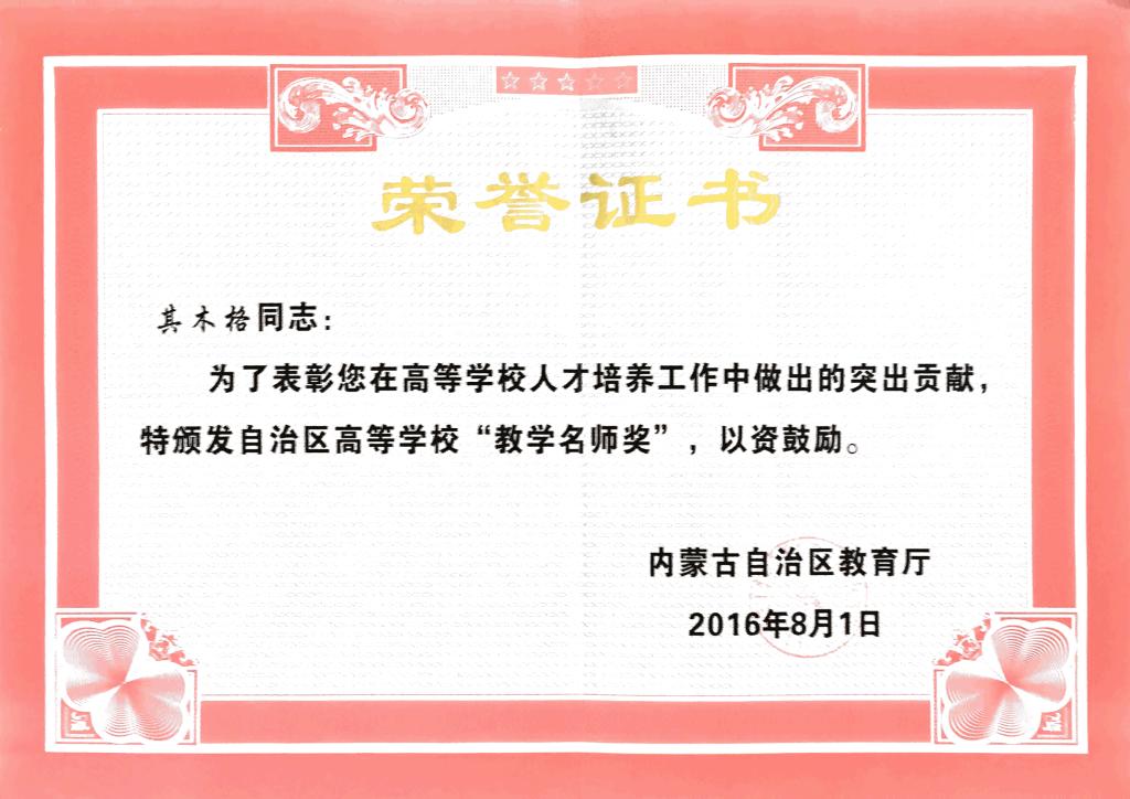 1. 围绕“四有”教师指向,注重团队建设。Beat365“数学教学科研蒙汉双语教师团队”获批“全国高校黄大年式教师团队”;“数学分析系列课程蒙汉双语教学团队”、“微分方程系列课程教学团队”和“应用数学与大数据实验教学中心”入内蒙古高等学校教学团队和实验教学示范中心,起到了示范作用。现有国务院特殊津贴专家1人、自治区“教学名师”2人及“教坛新秀”1人,内蒙古高等教育学会数学教育分会理事长1人,中国少数民族教育学会数学教育专业委员会理事1人……。额尔敦布和等获内蒙古乌兰夫基金会奖励;《内蒙古日报》、《民族画报》报道阿拉坦仓事迹;网易新闻等报道Beat365黄大年式教师团队。