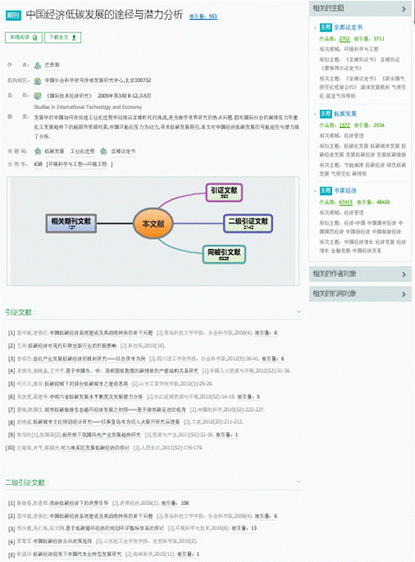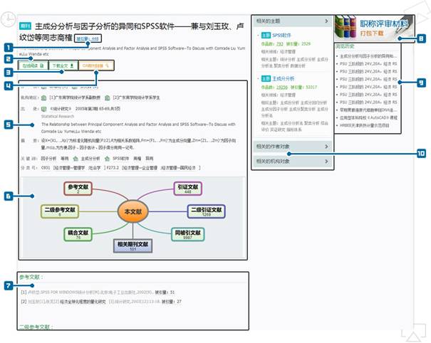 • 7相关文献内容:直观展示该篇文献的相似文献、参考文献、二级参考文献、引证文献、二级引证文献等信息;