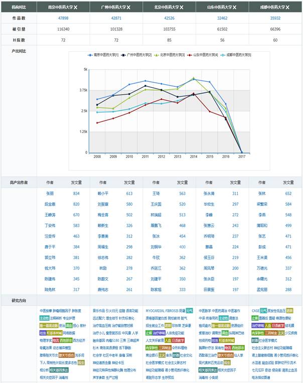 平台提供作者机构基金期刊主题等同类对象之间的产出对比报告。您可以按需勾选比较对象,点击对象比较按钮来查看相应信息。最大支持5个对象的比较。