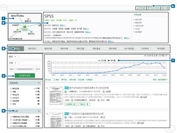 • 3相关对象切换:直观展现该对象的作品、相关机构、相关作者、相关传媒、相关基金、相关领域、360图、分析报告、研究趋势等信息;