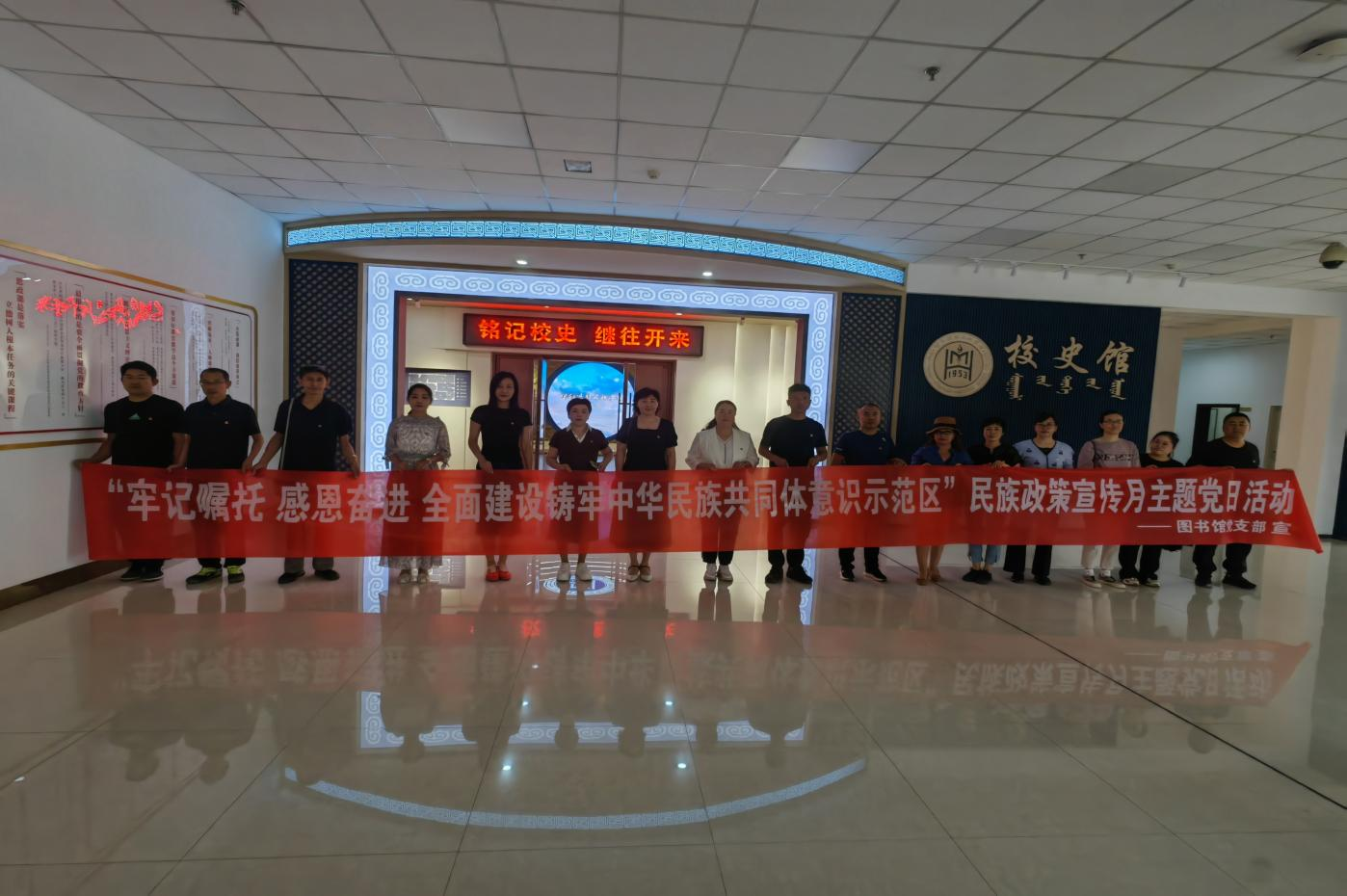 5月23日下午,图书馆党支部开展了以“牢记嘱托,感恩奋进,全面建设铸牢中华民族共同体意识示范区”为主题的民族政策宣传月主题党日活动。活动中,全体党员共同参观了校史馆与铸牢中华民族共同体意识教育馆,以此深化对党的民族政策的理解和认识。