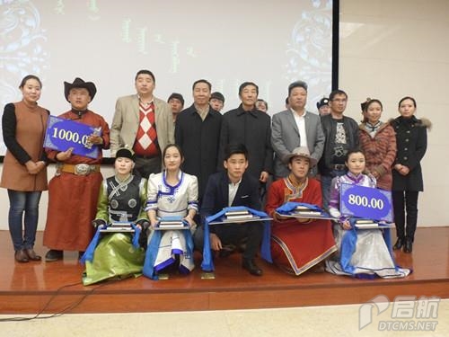2013年3月19日下午三点,传媒系“苍天的驼羔”诗歌协会在学院图书馆一楼报告厅举办了主题为“吉祥五珍”的全区高校蒙语诗歌比赛。最终由来自内蒙古民族大学的舒古日同学摘得桂冠,内蒙古大学乌达木、我院满达来同学获得亚军,内蒙古医科大学旭日、内蒙古大学特穆尔巴特及我院那音太同学获得季军。