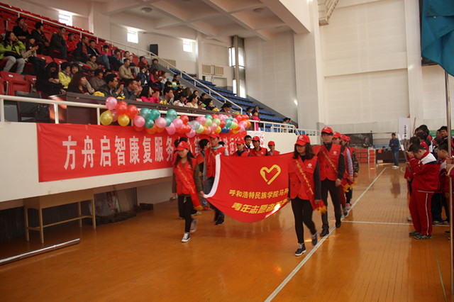 10月11——12日,在部团总支书记包玉柱老师的带领下,马列教研部学生志愿者赴赛罕区兴康社区方舟启智特殊教育学校协助其主办的首届特奥会。参与的单位有赛罕区残疾人联合会、赛罕区兴康社区、内蒙古农业大学、内蒙古工业大学、内蒙古师范大学、呼和浩特招标办,呼市电视台、北方新报等多家媒体进行报道。 11日下午三点,志愿者们首先来到方舟启智特殊教育学校,一方面与这里的特殊学生进行交流,一方面熟悉特奥会期间的具体工作。看到这里有学习园地,有心理治疗室,有微笑的同学,有和蔼可亲的老师,一幕幕的景象都让志愿者们惊讶与欣慰。志愿者们接触到了十几位可爱的小朋友,虽然他们的智力或是行为上不如常人,但他们乐观开朗的性格深深感动到了每一位志愿者。志愿者们也积极主动与孩子们促膝交谈、亲密接触。随后,志愿者们来到了内蒙古师范大学文体馆,为12日召开的运动会布置会场。志愿者们有的清洗桌椅,有的训练裁判员事宜,有的与其他学校的社会工作者一起划分各比赛项目场地,还有的负责整理签到、发放的奖品等。12人组成的志愿者团队,投入到了充实而有特殊意义的运动会准备工作中,他们为方舟启智特殊教育学校首届特奥会的成功举行,充分地献出自己的一份力量。
