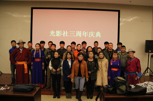 晚会展示了“鄂尔多斯市摄影协会”和“光影社”的若干优秀摄影作品供师生鉴赏。随后,同学们进行了小品、歌曲表演、诗歌朗诵等精彩的文艺节目。“光影社”还收到了著名书法家包金山老师的题词。