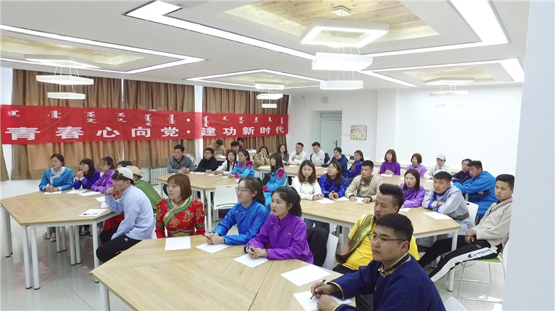 活动首先在就业指导中心实训中心开始,身着民族服装的学生们在学生会主席财拉根的带领下重温了五四运动爆发的起因、经过和意义后,进行了分组讨论,学生们围绕五四运动这一主题开始各抒己见、畅所欲言。随后,学生们来到学校体育场进行了合唱团歌、重温入团誓词、互相佩戴团徽以及射箭、蒙古象棋、沙嘎等活动。