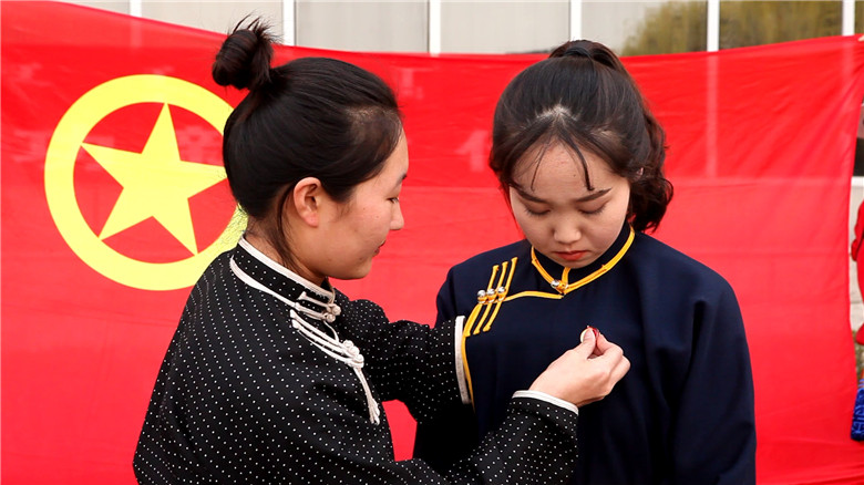 ![]() 佩戴团徽 |