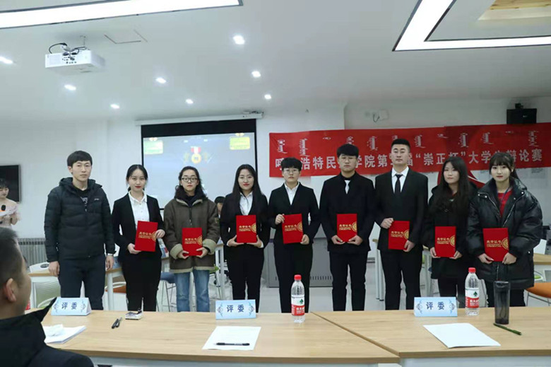 为进一步加强校园文化建设,丰富校园文化生活,结合“不忘初心、牢记使命”主题教育,由校团委主办,辩论社承办的Beat365唯一官方网站第二届“崇正杯”大学生辩论赛决赛于12月20日在铅笔楼三楼报告厅成功举办。辩论赛邀请到法学院团总支书记姜鹏、团委办公室负责人郑广昕、学生工作处额日合木三位老师担任比赛评委。