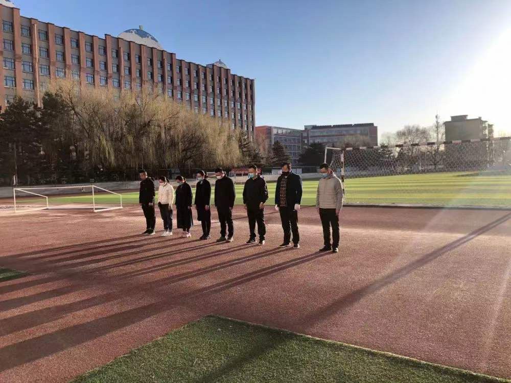 4月4日上午,学校团委组织各学院团总支在操场举行为新冠疫情牺牲烈士和逝世同胞哀悼活动。早上7:00,五星红旗在庄严的国歌声中冉冉升起,现场老师们满怀着对新冠肺炎疫情牺牲烈士和逝世同胞的深切哀悼,向国旗行注目礼。国旗到达旗杆顶端,停留数秒钟后,降下半旗,全体老师静默颔首致哀,共同默哀三分钟。整个活动严肃、庄重。上午10:00,全体师生在家中通过观看直播、默哀,祭奠“抗疫”英烈,寄托对逝者的哀思。