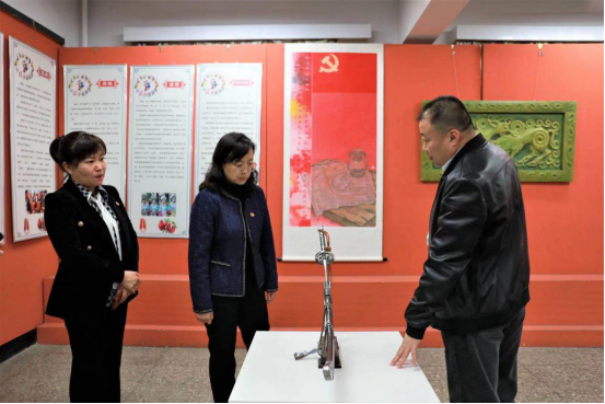 随后,在校团委书记苏伦高娃,副书记白银亮的陪同下,匡晓蕾副书记一行前往美术学院参观了“争做民族团结石榴籽”主题作品展。