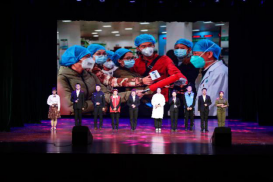 《光耀华夏 战役到底》现代文朗诵,生动展现了以快递员、医生、大学生、记者为代表的普通人在疫情中勇敢奉献一己之力,顽强与病毒抗争的最美“逆行”者群像。群蹈《奔腾》演绎了纵情奔腾在广阔草原上,一展民族舞蹈的豪迈之情,天上的鸿雁与草地上的骏马遥遥呼应仿佛在诉说着古老的传奇。