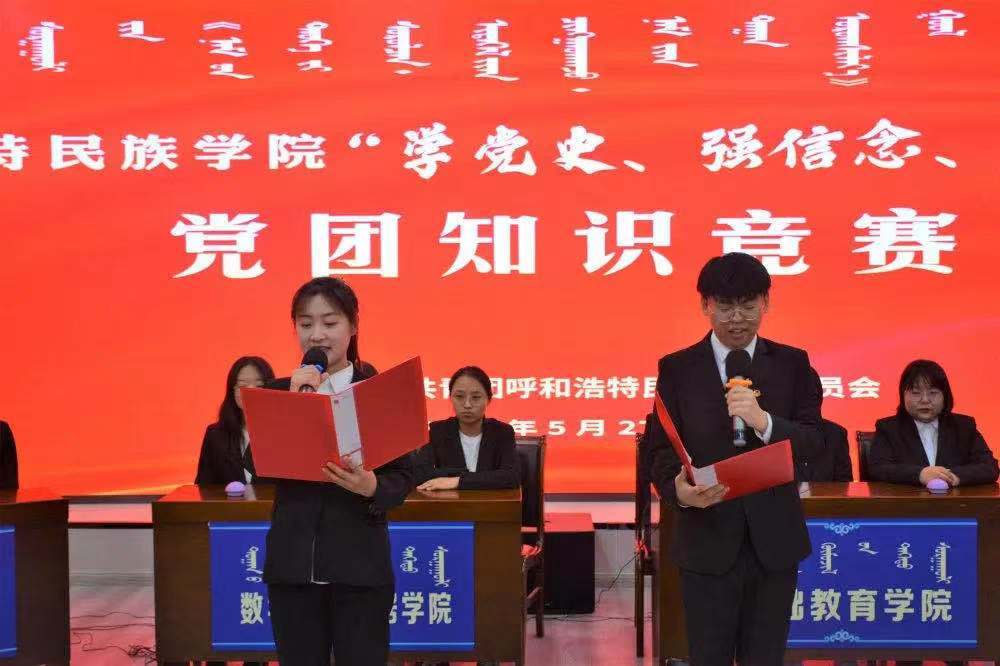 为深入开展党史学习教育,引导广大青年学史明理、学史增信、学史崇德、学史力行,于5月27日晚,校团委在图书馆一楼报告厅举办了“学党史、强信念、跟党走”主题党团知识竞赛决赛。大赛邀请到计算机学院党总支书记雪梅、学生工作部副部长白永泉、马克思主义学院哈斯木仁教授、美术学院党总支副书记吴利春、团委副书记白银亮担任评委。