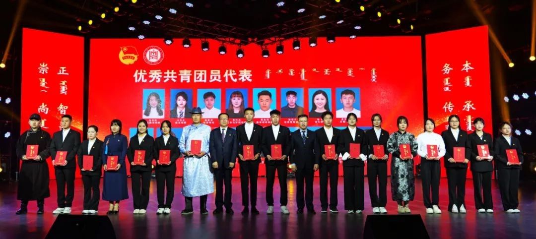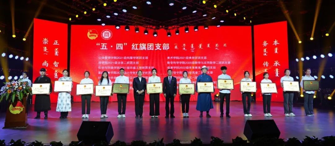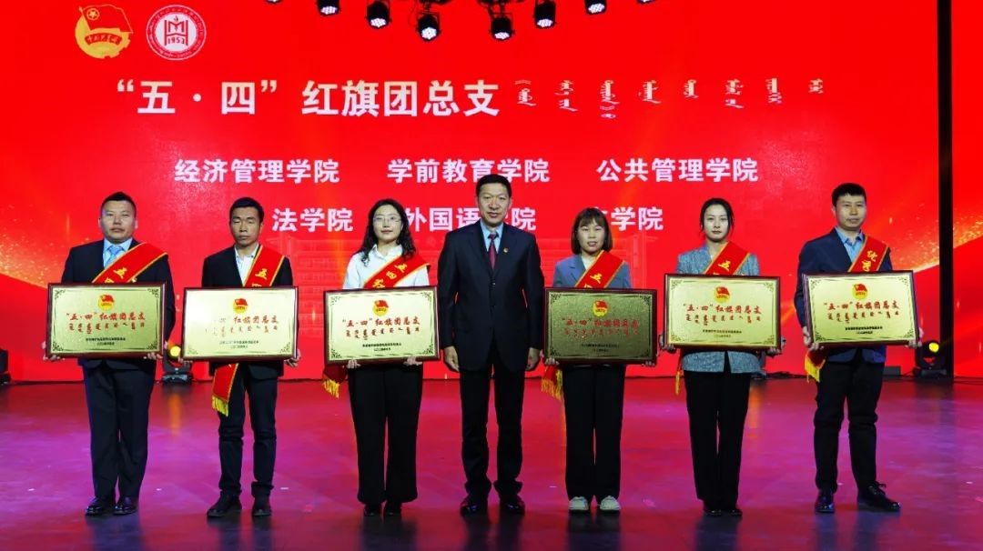 团委书记苏伦高娃宣读了2023—2024学年度“五·四”先进集体及先进个人的表彰决定。授予法学院学院团总支等 6个学院“五·四”红旗团总支 ,授予外国语学院2022级英语二班团支部等 14个团支部“五·四”红旗团支部,乌依勒斯等4名同志获“优秀共青团干部”荣誉称号,赵蕊等 170名同学获 “优秀共青团干员”荣誉称号。