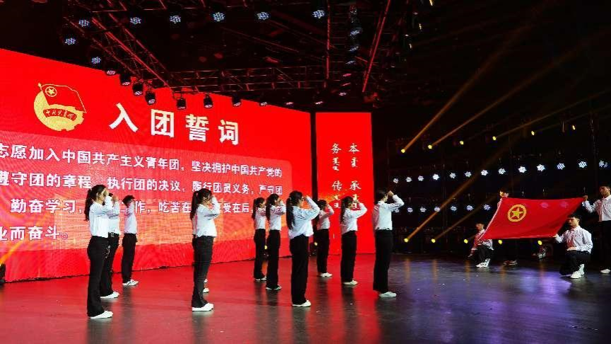 新团员入团仪式上,法学院白宇春同学带领团员们在团旗下庄严宣誓,嘹亮的声音在演播厅回荡,庄严的誓词寄托坚定的理想。团员青年们目光坚定,斗志昂扬,立志以青春敬年华,以青春献人民,赓续奋斗精神,厚植青年担当,展现青春风采。