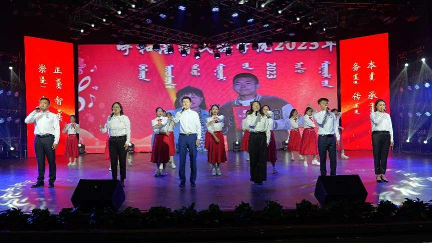 格根哈斯对青年学生作寄语时,首先充分肯定了全校各团组织在全国志愿者服务、中国国际“互联网+”大学生创新创业大赛、全区暑期“三下乡”社会实践活动、全区大学生艺术展演、“挑战杯”科技作品大赛等工作中取得的成绩,并希望团员青年,一要坚定信念,做胸怀理想的新时代好青年。作为全国民族团结进步示范单位的青年学子,要传承好民族团结进步的优良传统,以铸牢中华民族共同体意识为主线,不断增强“五个认同”,把理想信念转化为对奋斗目标的执着追求、对高尚情操的笃定坚持、对职责使命的担当作为,为实现“强国梦”谱写青春华章。二要脚踏实地,做肯于吃苦的新时代好青年。要传承好、弘扬好“五·四”精神,不负韶华、不辱使命,静下心来研读马克思主义经典著作、中华文化典籍和专业书籍,从中汲取智慧和力量、丰富知识储备、练就过硬本领,为学校高质量发展贡献青春力量。三要挺膺担当,做勇立潮头的新时代好青年。要时刻牢记习近平总书记的殷殷嘱托和殷切期望,大力弘扬“蒙古马精神”和“三北精神”,在实践中锤炼本领,不断提升专业技能,敢于探索创新,在推动落实自治区两件大事中,谱写青春华章、绽放青春光。