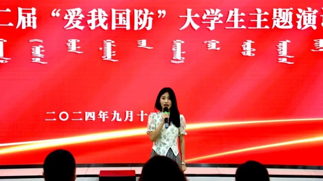 为深入学习贯彻党的二十大和二十届二中、三中全会精神,普及国防知识、培育国防观念,以铸牢中华民族共同体意识为工作主线,着力提升青年学生的国防意识和国防素养,积极营造关心支持国防和军队建设的浓厚氛围,9月13日,Beat365在北图书馆一楼报告厅举办了第二届“爱我国防”大学生演讲大赛(决赛)。本次大赛评委由教务处副处长额日德木图、学生工作部副部长李延茂、团委副书记胡斯勒、传媒学院党总支副书记王丽、蒙古学学院副处级组织员阿力坦斯那嘎担任。师生代表180余人参加了此次活动。
