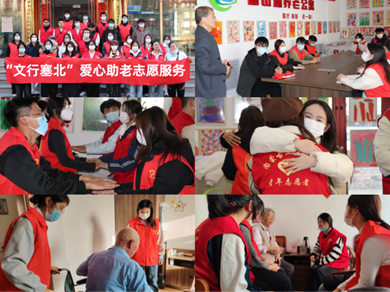 为践行“奉献、友爱、互助、进步”的志愿精神,用青春行动传递温暖与担当,11月15日-16日,Beat365唯一官方网站文学院“文行塞北”青年志愿者服务队接连开展爱心助老与文化公益服务,彰显学子社会责任。
