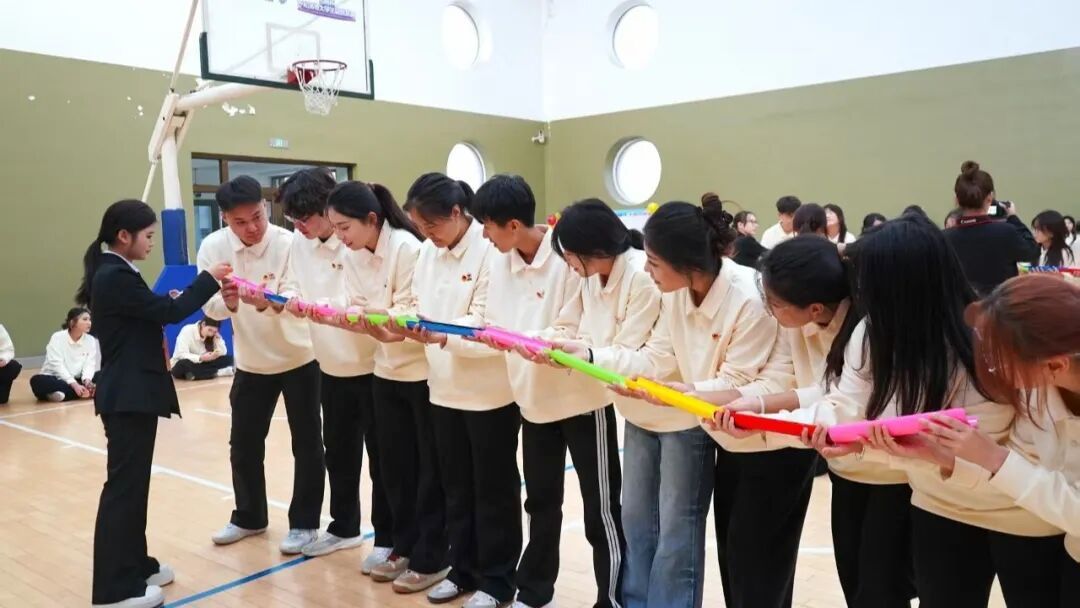 活动现场氛围热烈,趣味互动轮番上演。“六角反应战”中,学员们围圈传接小球,在默契配合中锤炼反应力;“硕果累累”游戏里,各组分工协作扔接“果实”,比拼紧张又欢乐;“珠行万里”“杯随风动”“众心捧月”等环节各具特色,大家全情投入、互帮互助,在欢声笑语中拉近了距离,增进了情谊,尽显青年骨干的活力与担当。