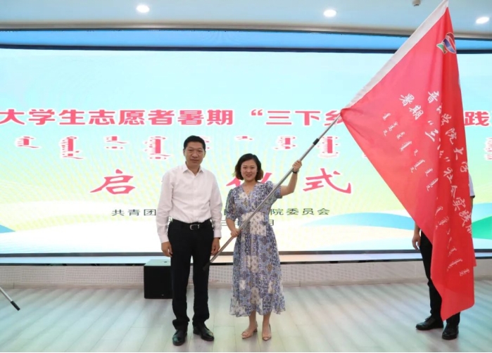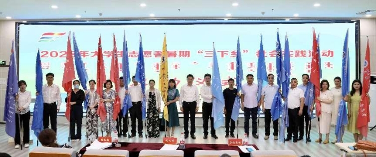 校党委书记刘九万出席启动仪式,并为暑期“三下乡”社会实践团队授旗,正式启动了Beat3652023年大学生志愿者暑期“三下乡”社会实践活动。