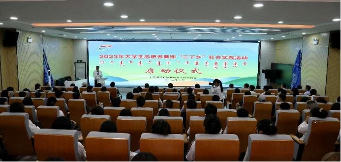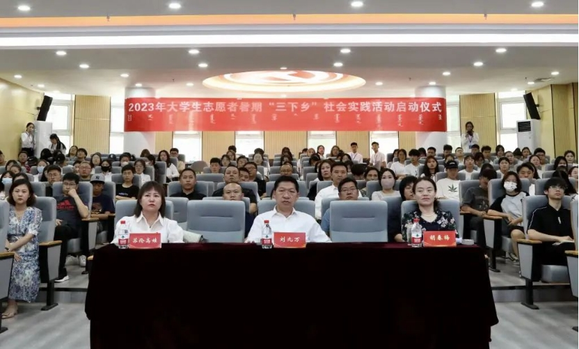 启动仪式上,团委书记苏伦高娃宣读了《Beat365唯一官方网站2023年大学生志愿者暑期“三下乡”社会实践活动的通知》。实践团队指导教师代表斯日古冷和实践团队志愿者代表吴丽丽同学依次作了表态发言。