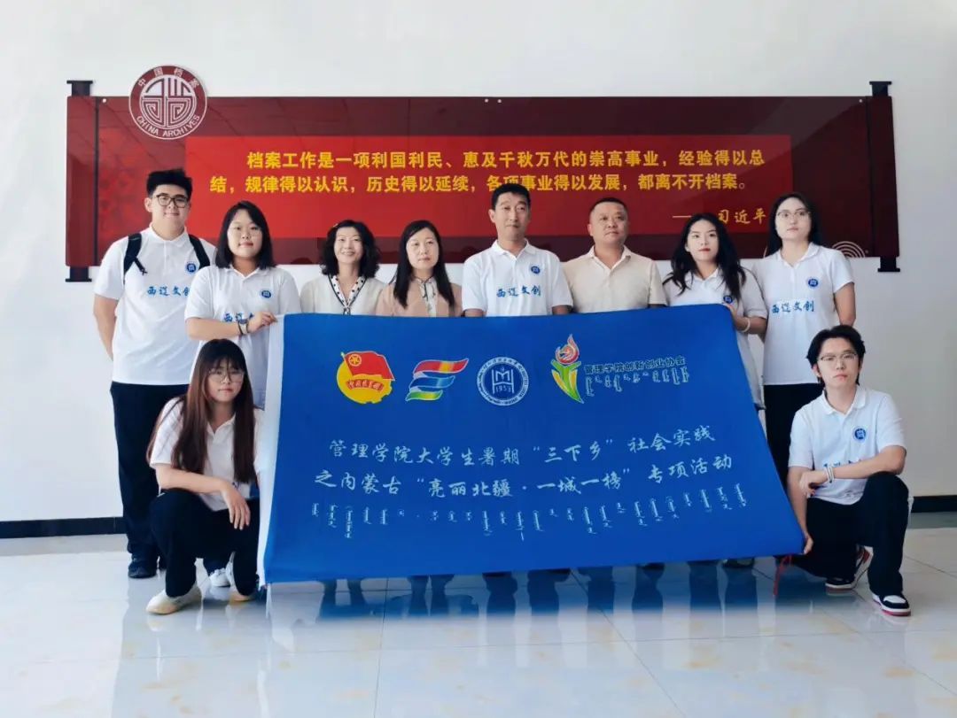 本次“三下乡”社会实践活动通过为期四天的实地调研,取得了丰硕成果。在文化资源挖掘方面,团队系统收集了西辽河文明、孝庄文化、民俗非遗等多维度的文化素材,为文创产品设计奠定了坚实基础;在校地合作层面,与库伦旗、奈曼旗档案馆达成共建实践基地、实习基地的初步意向,搭建了高校服务地方文化发展的合作平台;在人才培养上,学生通过田野调查、座谈交流、社会服务等环节,提升了实践能力、创新思维与社会责任感;在爱国主义教育与团队建设方面,通过参观红色展览、开展帮扶活动及户外拓展,强化了成员的家国情怀与团队协作精神。未来,团队将以此次实践调研为基础,深入提炼西辽河文明与孝庄文化的核心基因,融合草原丝绸之路非遗技艺,开发系列兼具历史深度与市场价值的文创产品,助力通辽地区文化资源的活化利用与文旅产业发展,以实际行动践行新时代青年的使命担当。