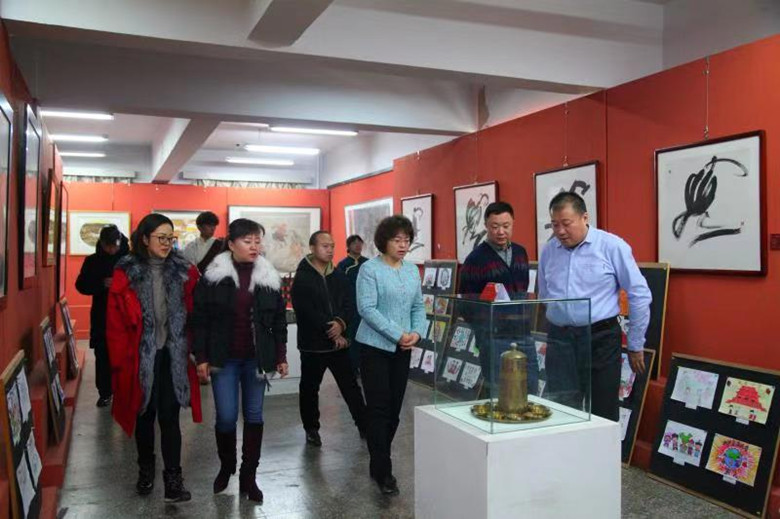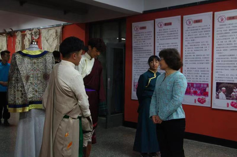 为深入学习贯彻习近平新时代中国特色社会主义思想、习近平总书记考察内蒙古重要讲话精神以及习近平总书记关于全国民族团结进步表彰大会重要讲话精神,结合学校“不忘初心、牢记使命”主题教育,扎实推进新时代民族团结进步教育。12月12日上午,由共青团Beat365唯一官方网站委员会主办,美术学院团总支承办的首届校园民族文化艺术交流展示活动在美术楼二楼展厅举行。学院党委副书记胡春梅、党委委员、宣传部部长王玉玲以及统战部、团委、各二级学院500余名师生先后参观了此次展览。