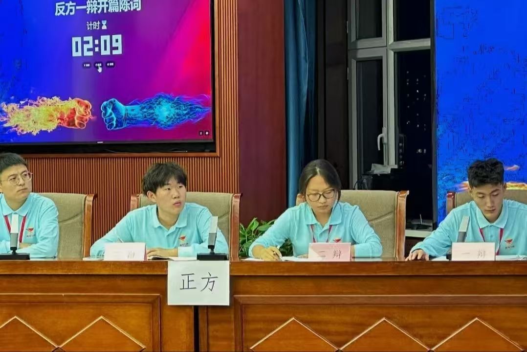 为提高学员们的思辨能力,学校第九期青马班于11月11日在综合楼12楼会议室举办了主题辩论赛。由校辩论队队长李文爽,成员刘丽娜、李克勤担任评委。