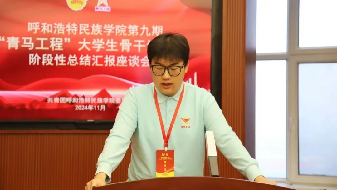 汇报结束后,团委副书记胡斯勒做了总结发言。他对本次汇报会和学员们取得的进步给予了高度评价,并对所有青马班学员提出了三点要求:一是加强理论学习能力。要在学习和工作中增强对资源、材料的分析利用能力,提高自身的理论学习能力;二是要增加实践锻炼能力。积极参加各类社会实践活动,在实践中推动创新,在探索中寻求突破;三是培养沟通协调和团队协作能力。在团队建设和活动中提升团队协作能力与沟通能力。最后,他希望所有学员以此次青马班培训为契机,不忘初心、砥砺前行,认真学习并践行习近平新时代中国特色社会主义思想,不断成长为优秀的青年马克思主义者。
