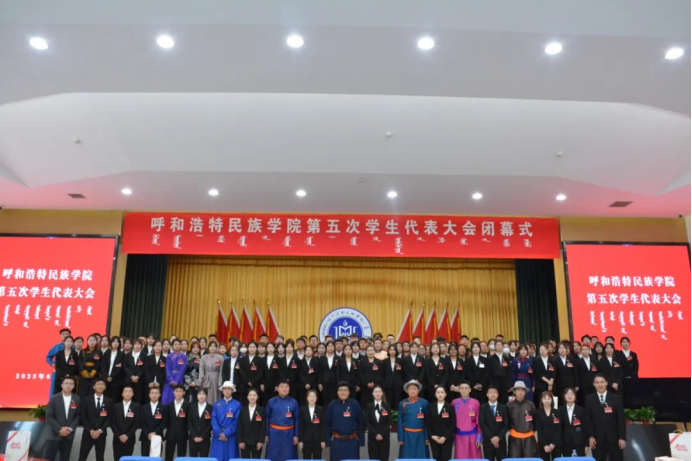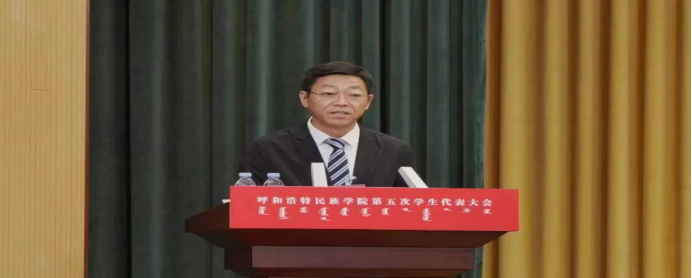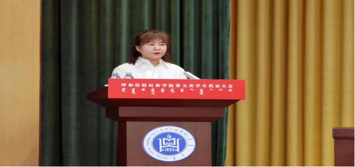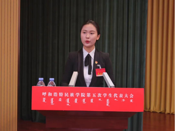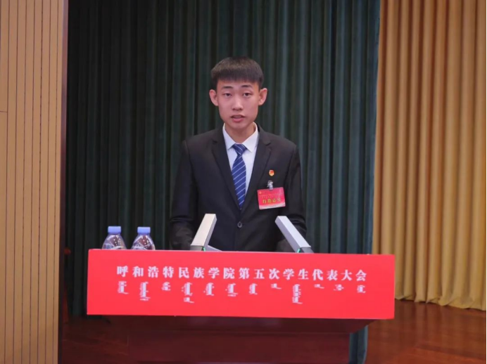 随后,与会领导向学生代表赠书;会上听取了蒋昊言同学所作的《踔厉奋发,勇毅前行,为全面建设现代化强国,实现中华民族伟大复兴,贡献民院学子的青春力量》工作报告。报告总结了第四次学生代表大会以来学生组织的工作与所获成果,对学生组织的工作目标和任务做出了规划,并号召同学们要顺应时代潮流,准确识变、科学应变、主动求变,立足国家和社会需要,不断推进改革创新,勇敢肩负起新时代强国荣校的历史使命,彰显新时代呼和民院青年的担当作为,为学校高质量发展、全方位建设”模范自治区“贡献呼和民院学子的青春力量!