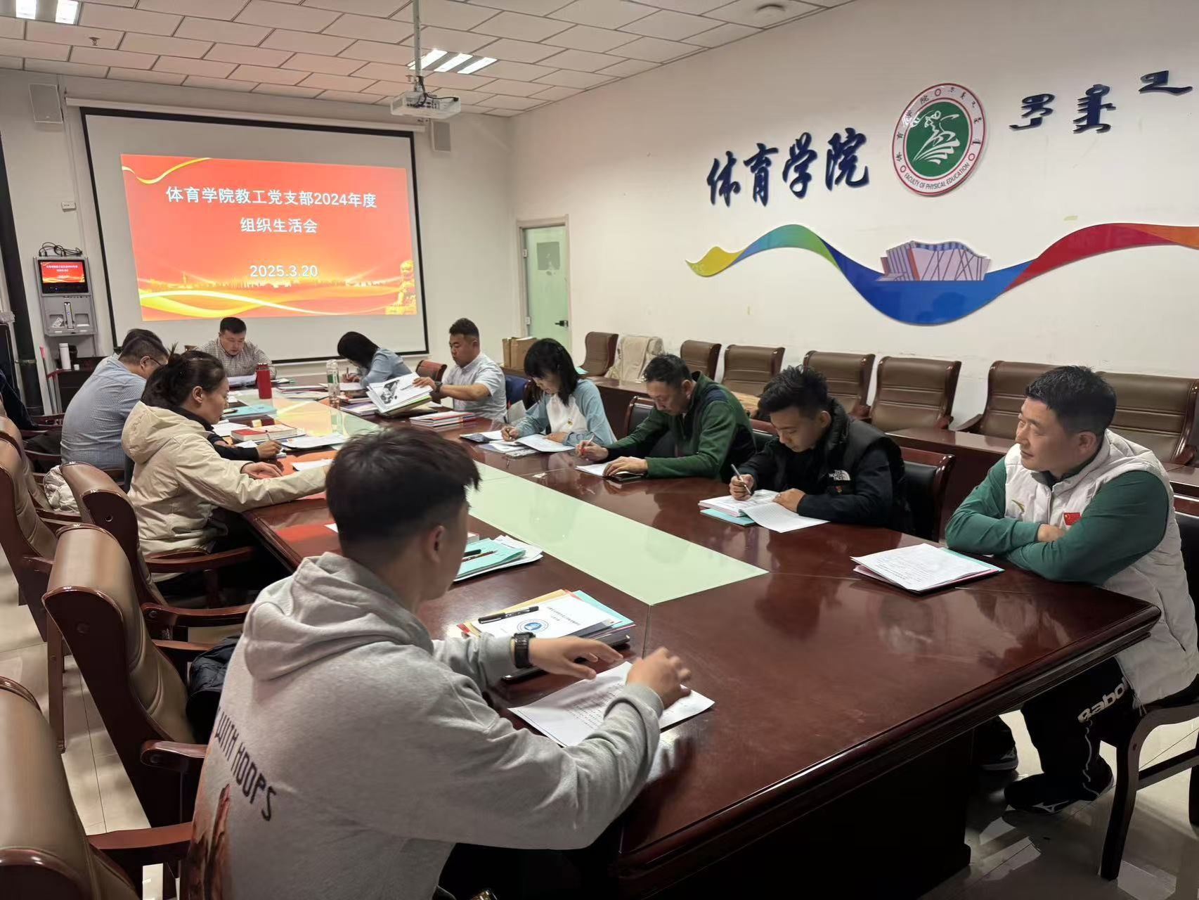 为深入学习贯彻习近平新时代中国特色社会主义思想,加强党员队伍建设,提升党支部的凝聚力和战斗力,320日晚19:30,体育学院教工党支部在体育馆三楼会议室召开了2024年度专题组织生活会及党员民主评议会。本次会议由党支部书记包金海同志主持,体育学院全体党员参加。