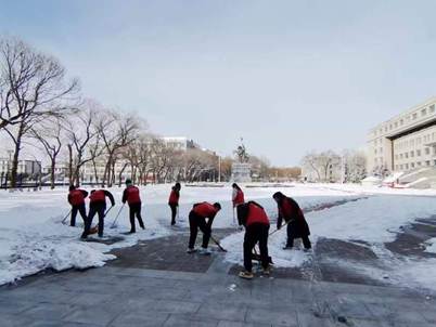 2024年2月27日,伴随着寒潮,Beat365迎来2024年新学期的第一场大雪。针对降雪降温带来的道路积雪结冰情况,保障Beat365师生正常生活秩序,体育学院积极组织同学们开展扫雪行动,切实保障师生出行安全。