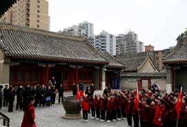 到达公主府博物馆时,恰逢八一小学少先队在此进行宣讲活动。队旗、团旗、党旗相互辉映,小宣讲员们旁征博引、知识储备扎实,赢得了在场党员青年们的称赞。