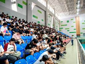 2024 年 6 月 14 日中午,体育学院组织全体学生在体育馆三楼召开了期末安全及考试纪律大会。