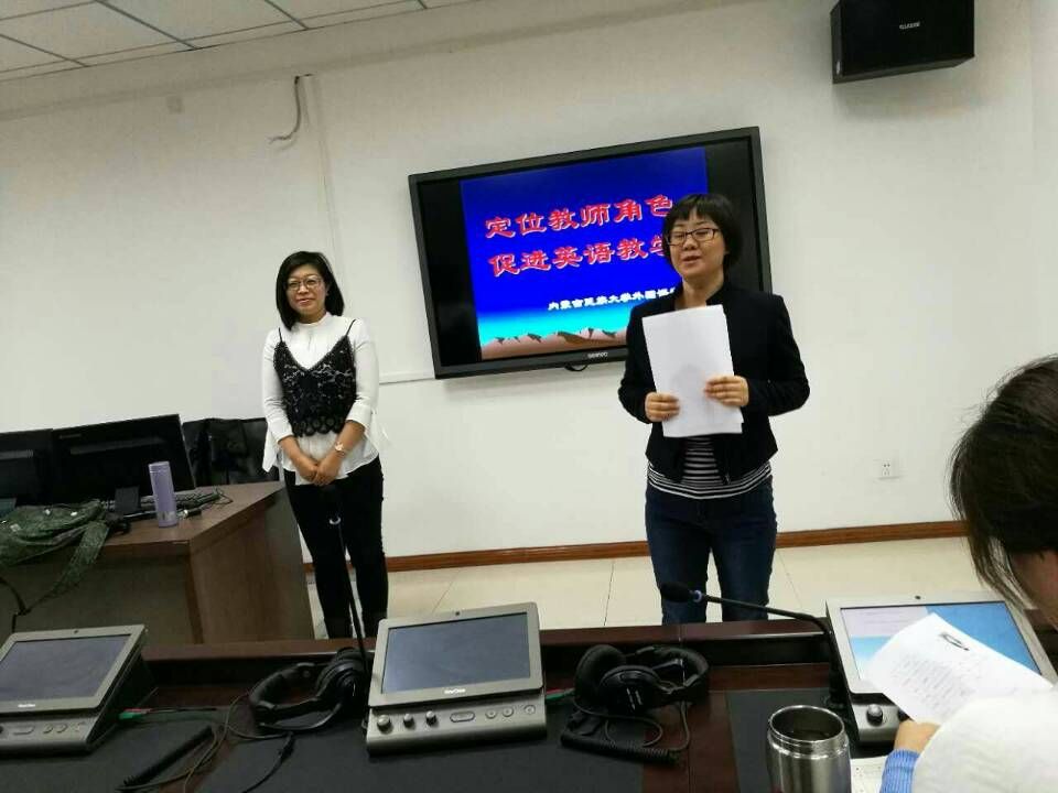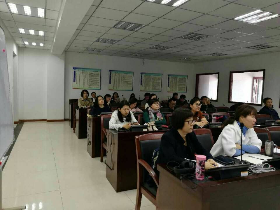2017年4月18日下午2:30,外语系邀请内蒙古民族大学外国语学院支教教师李坤和李雪萍两位老师在都林楼602同声传译实验室做讲座。讲座由外语系陈玉红副教授主持,外语系全体专任教师到场聆听。