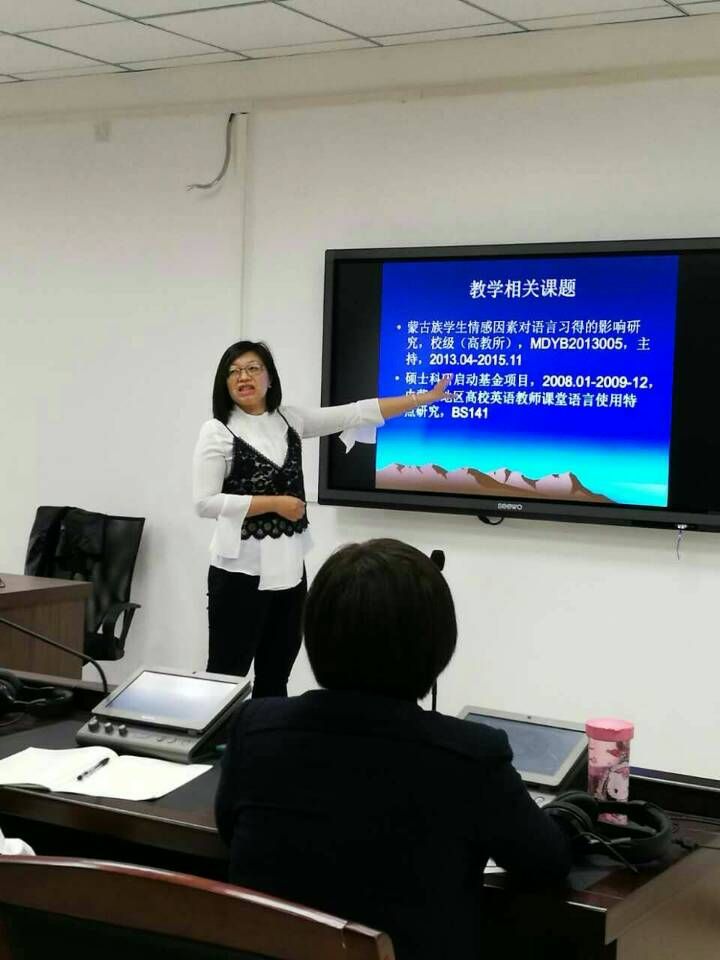 李雪萍老师的讲座以《英语专业蒙、汉大学生词汇学习策略对比研究》为题。王雪萍老师是内蒙古民族大学外国语学院副教授,高年级英语教研室副主任。她以英语专业蒙、汉大学生词汇学习对比研究为基础,利用实证研究和数据统计,分析对比了蒙汉大学生在英语学习中词汇策略使用的异同和在英语课堂教学中的具体运用情况,对授课对象以蒙古语授课大学生为主的我系教师而言,非常值得学习和借鉴。