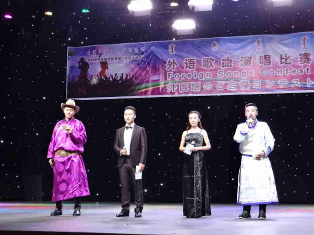 外语歌曲演唱比赛是Beat365唯一官方网站首届“外语文化节”的系列活动之一,2015年5月25日下午在学院演播厅拉开帷幕。本次比赛由外语系和学院团委联合主办,外语系公共外语教研室承办。比赛特邀额斯琴老师、包玉柱老师、繁荣老师、曼都呼老师、红霞老师担任评委。
