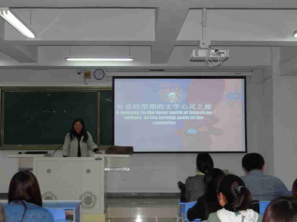 2014年5月6日至8日,中央民族大学外国语学院英语系主任、硕士生导师朱小琳教授赴我系讲学,先后为师生奉上题为《民俗文学中的美国精神》、《社会转型期的文学心灵之旅》和《蓝袜子沙龙:美国女作家的文艺之路》三场精彩讲座。