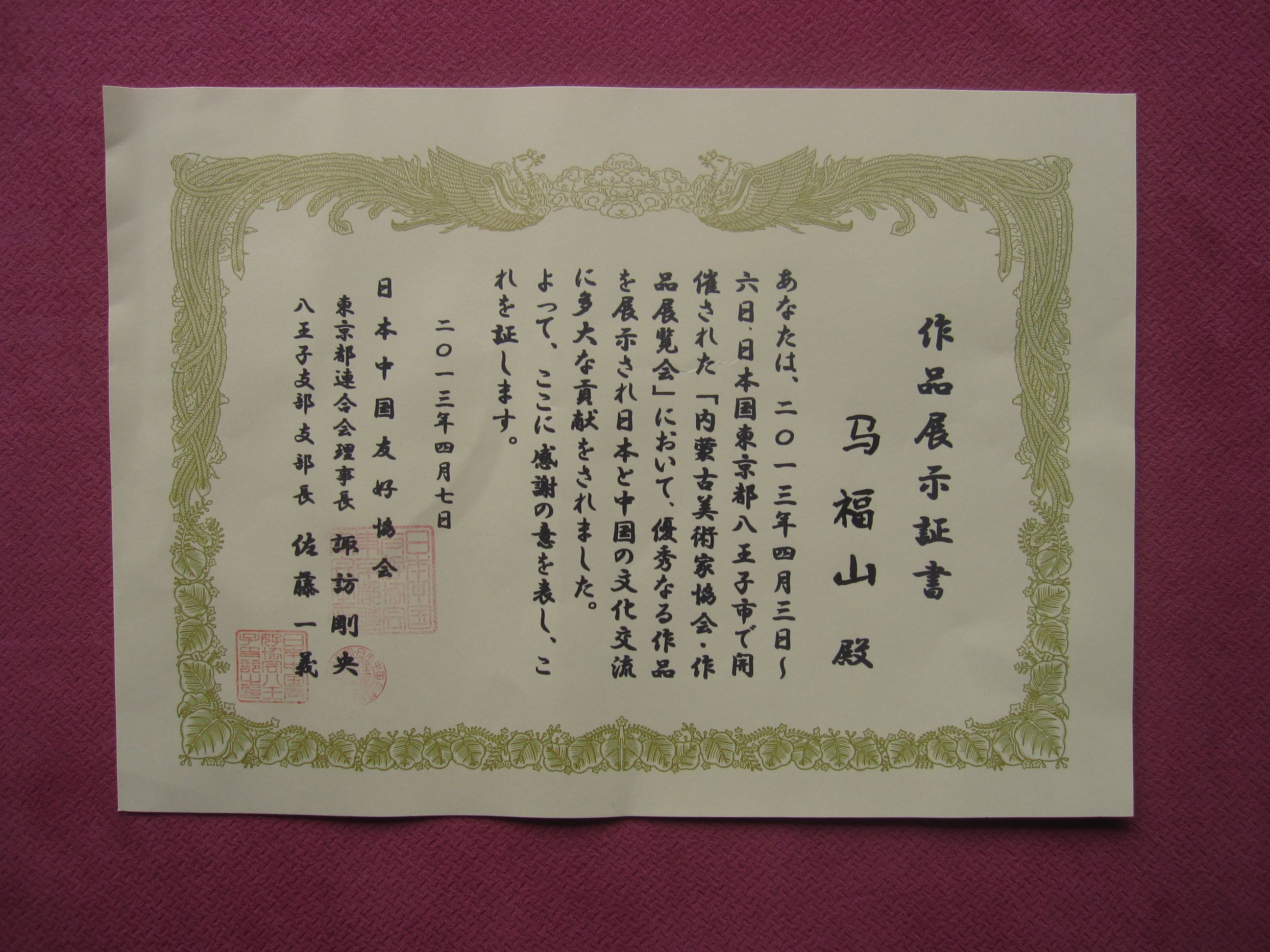 应东京都日中友好协会和日本谚语学会邀请,外语系日语教研室主任马福山副教授于2013年4月1日至10日访问日本,参加了在东京都八王子市举办的中国・内蒙古美術家協会美术展。他的21幅日文书法作品赢得了八王子市书法爱好者的一致好评。日本《读卖新闻》、东京都八王子市电视台、中国文化部《文化传通网》、《地方快讯》等媒体报道了上述活动。