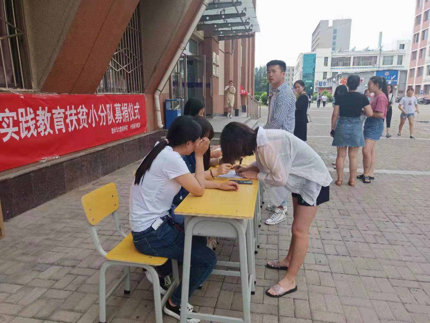 2019年7月1日中午12:00,我院开展“三下乡”社会实践教育扶贫小分队募捐仪式。本次活动由外国语学院联手数学与大数据学院联合推出。所捐物品都会在“三下乡”活动时送到贫困地区。