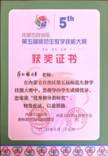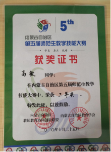 外国语学院高度重视本次大赛,秉持“以赛促训、以赛促学、以赛促教、赛教结合、提高能力”的大赛宗旨,赛前按照全区师范生比赛规则和流程,精心组织了班级赛、学院赛,决出参加校赛和区赛的优秀选手。指导教师多次开展小组研讨,指导学生认真备课、细心打磨、不断演练,最终,我院小学教育(英语方向)专业高敏、霍文晶两位同学在自治区比赛中分别荣获小学教育英语组三等奖;萨仁格日乐、红鸽两位老师荣获“优秀指导教师奖”。