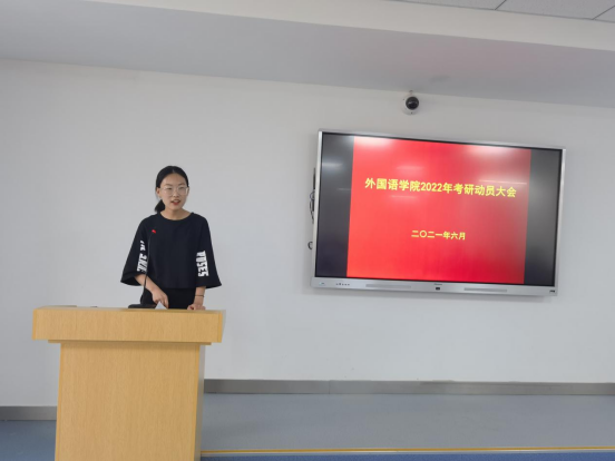 为进一步加强学风建设,帮助2018级学生明确考研目标、掌握相关考研技巧,提升考研竞争力,外国语学院于6月16日下午在都林楼518教室召开2022年考研动员大会。学院院长肖查娜、副院长陈玉红、2017级考取研究生的学生代表、校院两级考研班学生共计90余人参加会议,会议由考研班班主任雷旭平主持。
