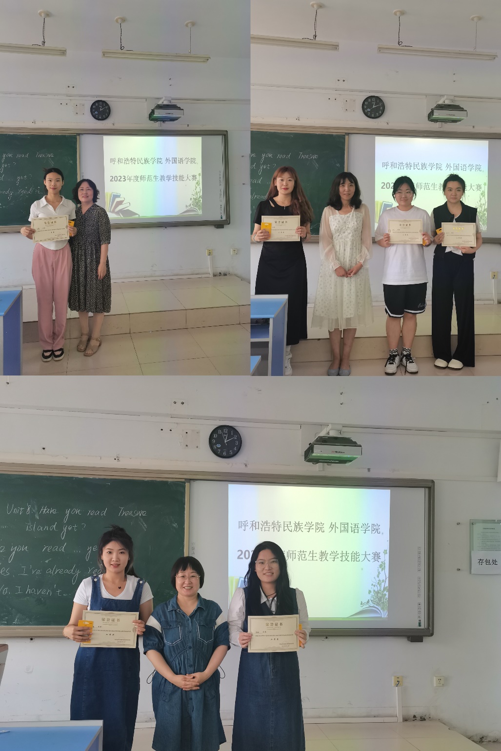 为进一步检验我院英语师范专业学生教学技能实践成果,为学生提供教师职业技能展示和交流的平台,我院特面向英语师范专业全体学生举办英语师范生教学技能大赛,并于6月21日上午8时在都林楼605举行大赛。我院英语教育教研室三位教师萨仁格日乐、乌日娜、春梅担任了比赛评委,14名选手参加了此次大赛。